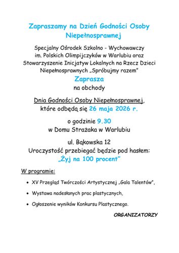 Zapraszamy na Dzień Godności Osoby Niepełnosprawnej