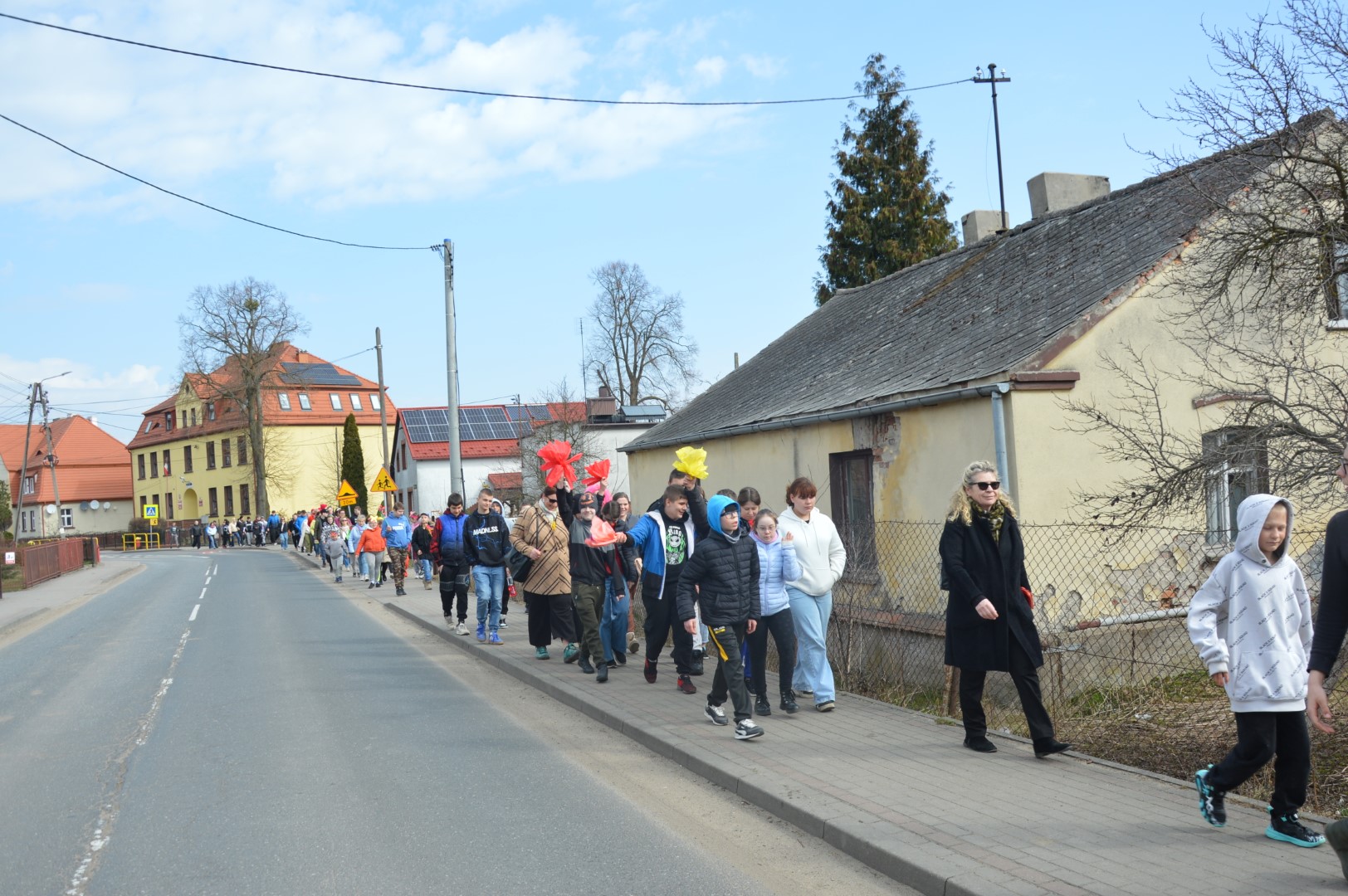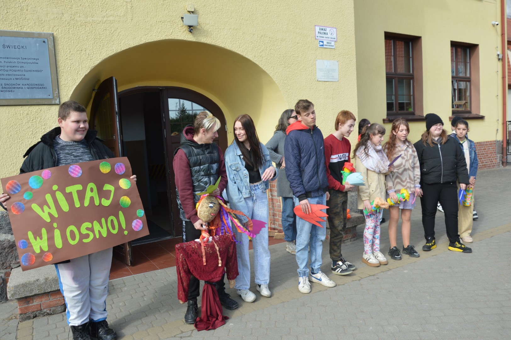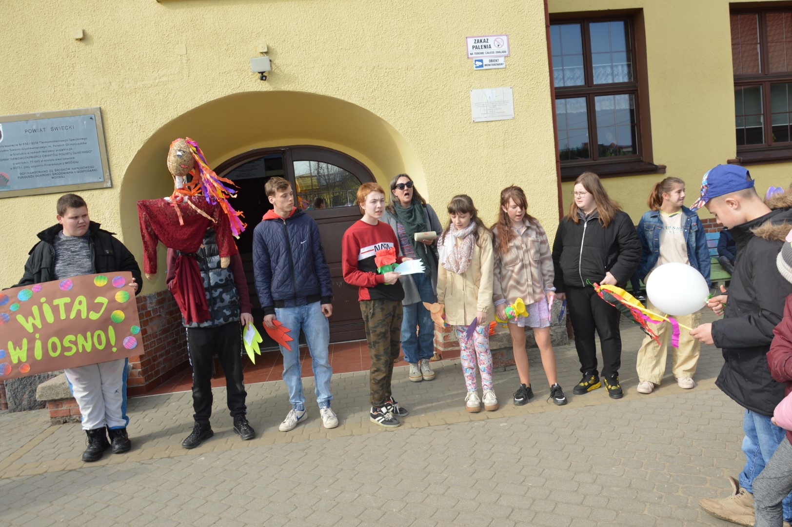 Obchody rozpoczęliśmy kolorowym przemarszem ulicami naszej miejscowości. Uczniowie z zaangażowaniem nieśli przygotowaną wcześniej Marzannę - symbol odchodzącej zimy. Tradycyjnie, zgodnie z obyczajem, pożegnaliśmy zimę poprzez symboliczne spalenie Marzanny, witając tym samym nadchodzącą wiosnę.