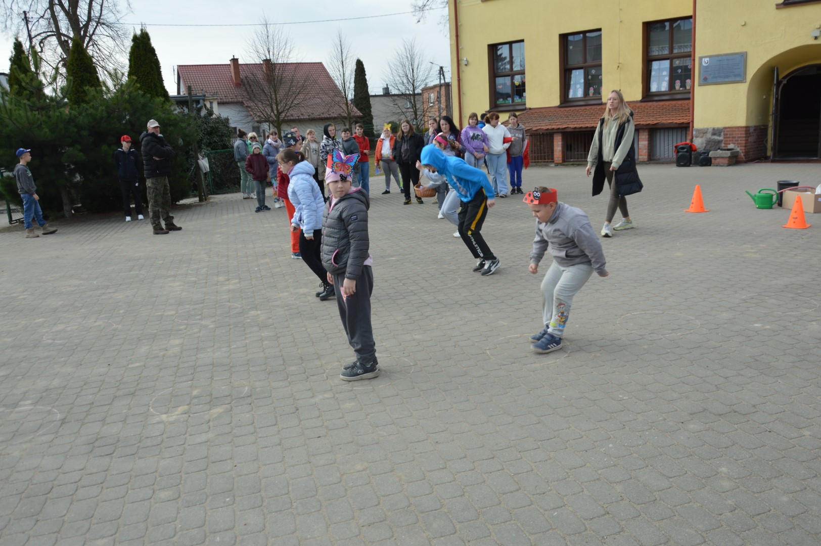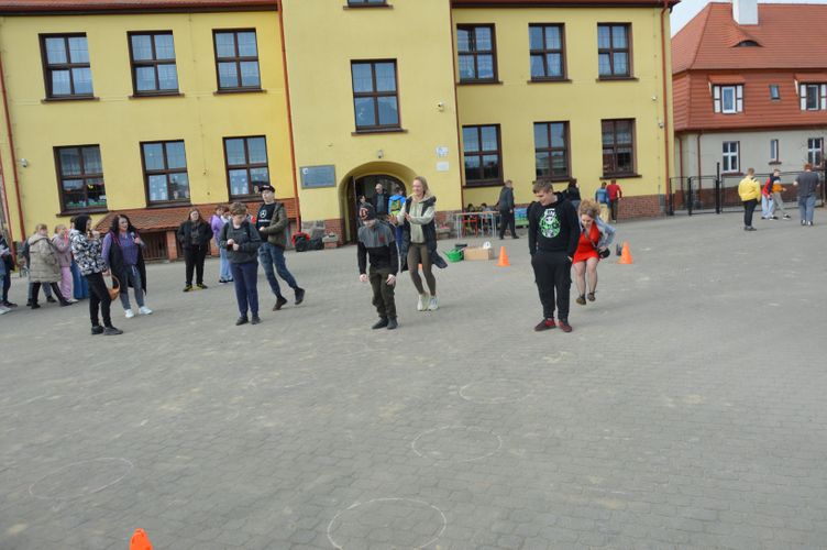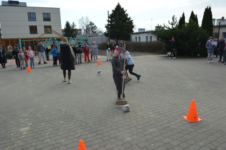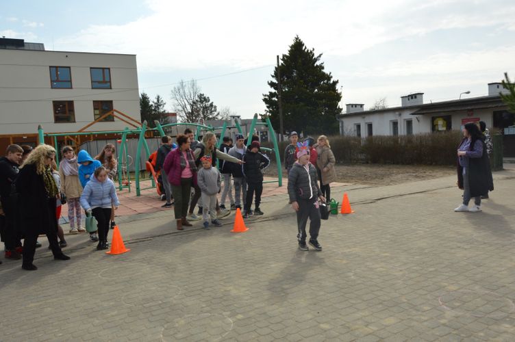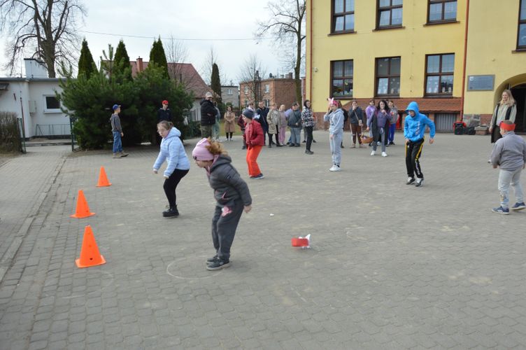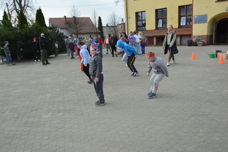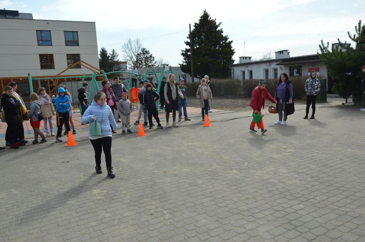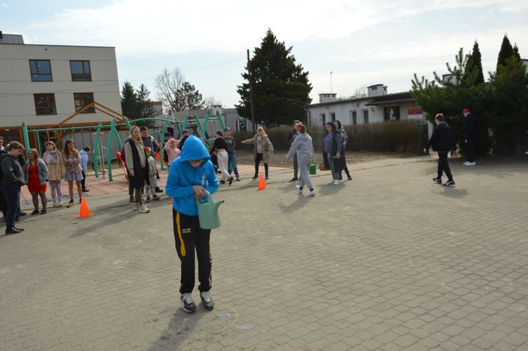 Po części oficjalnej przyszedł czas na aktywność fizyczną i zdrową rywalizację. Na uczniów czekały liczne konkurencje sportowe inspirowane wiosną, które dostarczyły wielu emocji i radości. Była to doskonała okazja do wspólnej zabawy, rozwijania sprawności ruchowej oraz budowania ducha zespołowego.