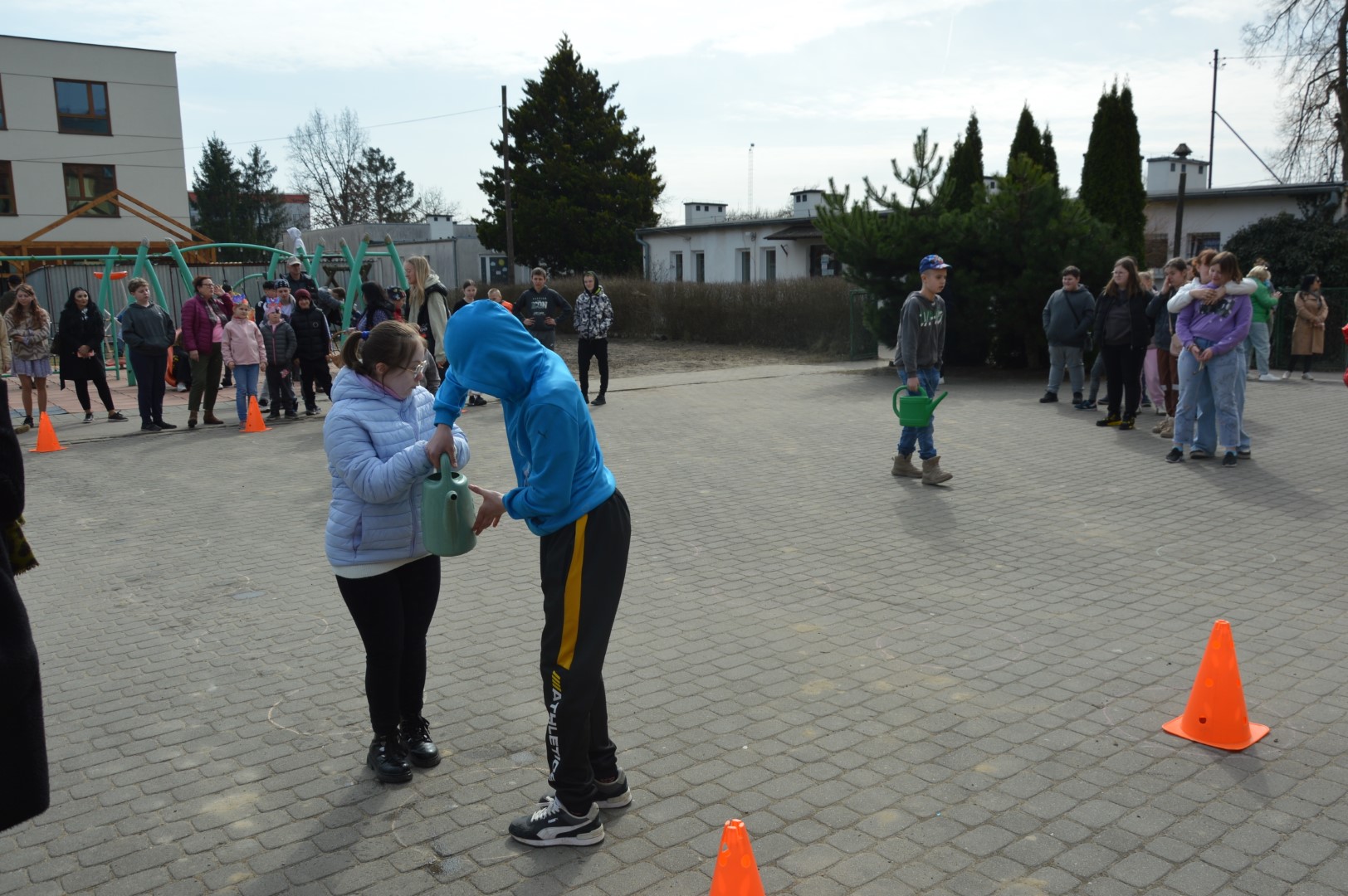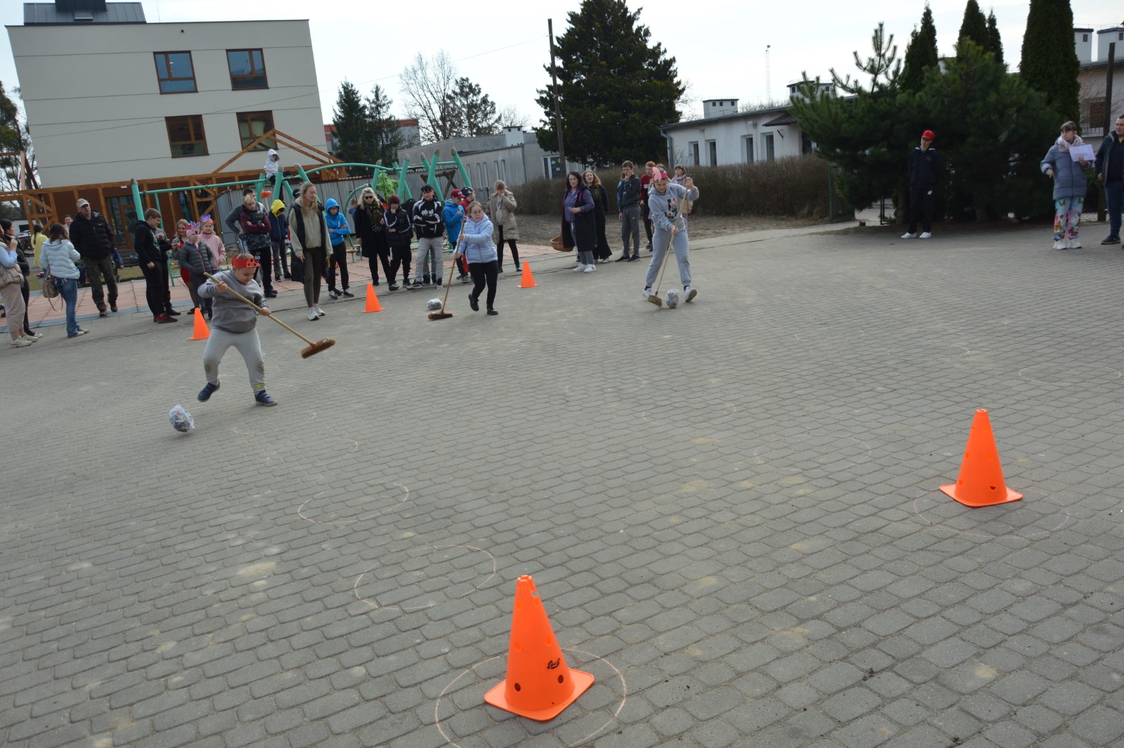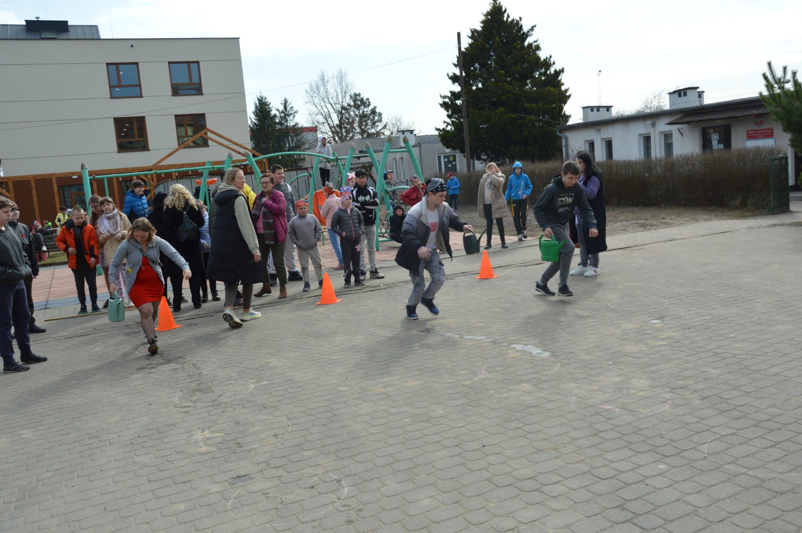 Po części oficjalnej przyszedł czas na aktywność fizyczną i zdrową rywalizację. Na uczniów czekały liczne konkurencje sportowe inspirowane wiosną, które dostarczyły wielu emocji i radości. Była to doskonała okazja do wspólnej zabawy, rozwijania sprawności ruchowej oraz budowania ducha zespołowego.