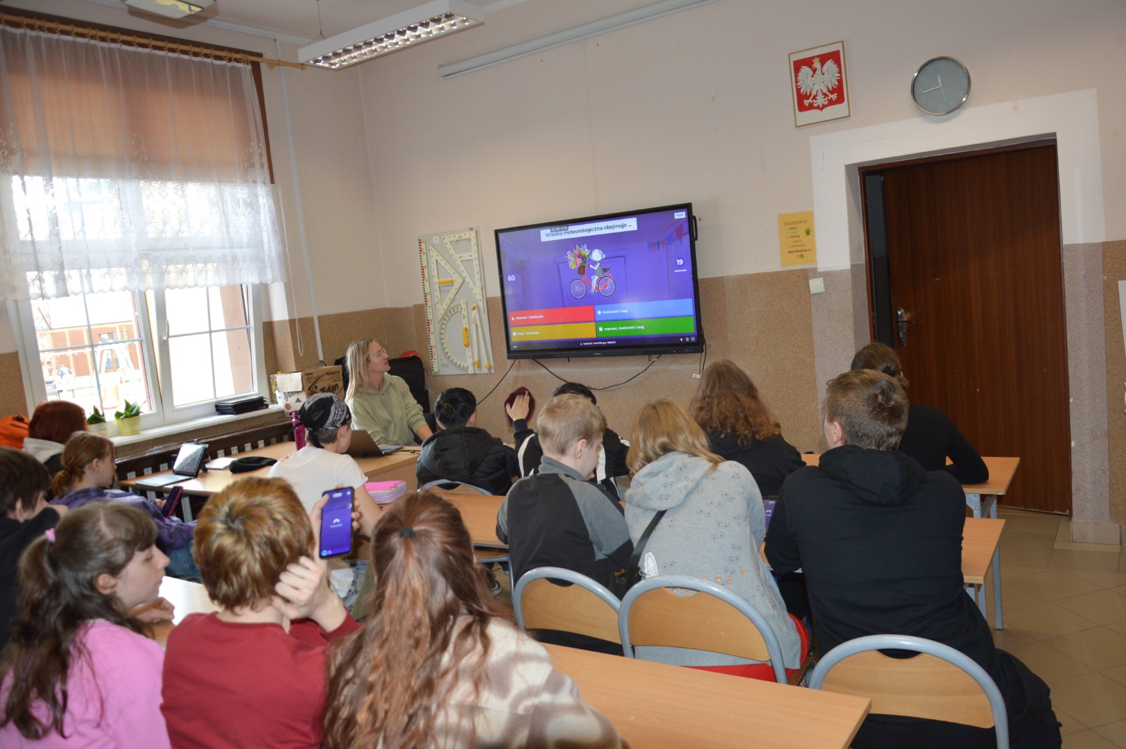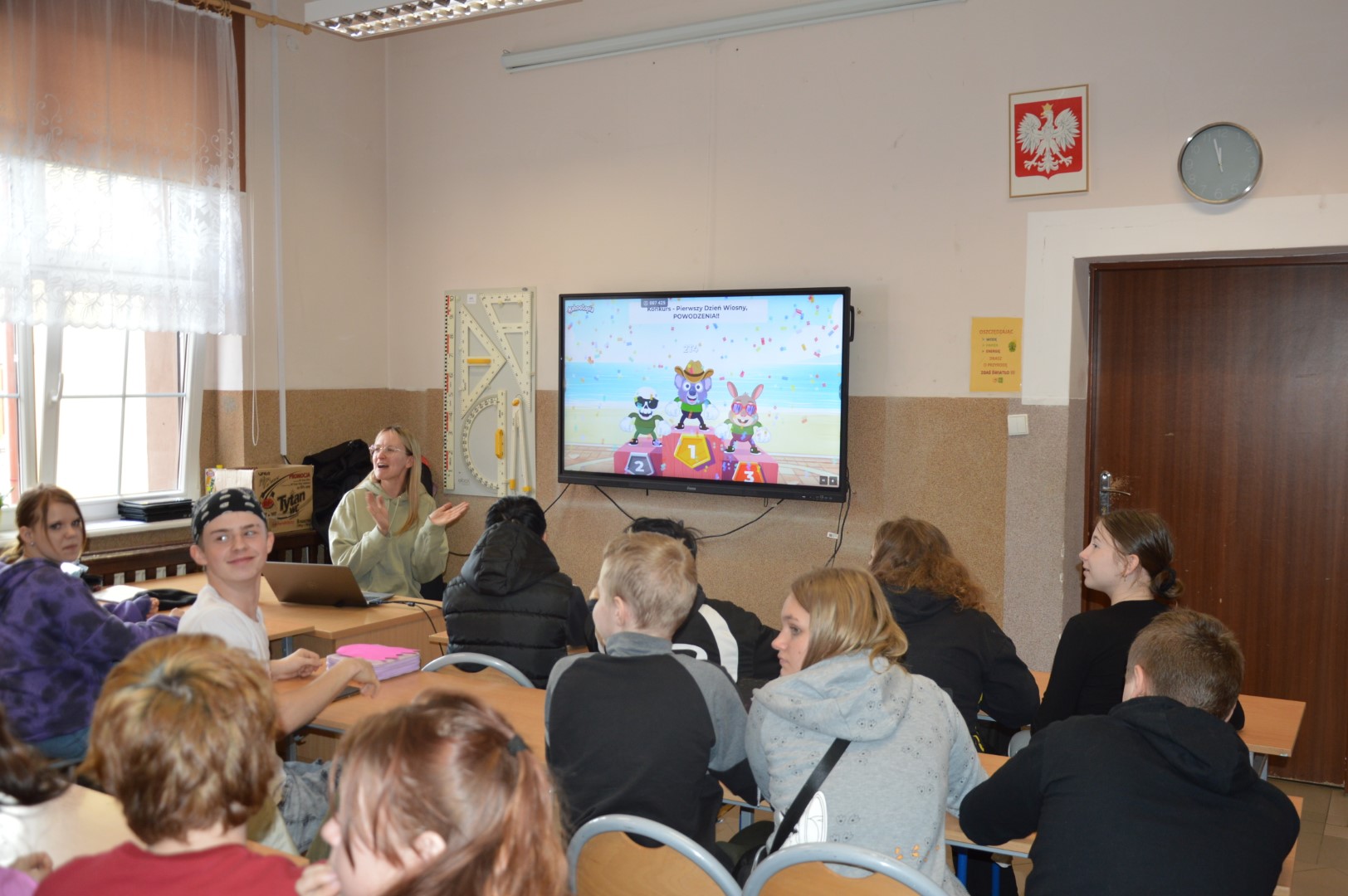 Nie zabrakło również elementów edukacyjnych. Uczniowie wzięli udział w interaktywnym konkursie wiedzy w formie Kahoot, gdzie mogli sprawdzić swoją wiedzę o wiośnie, przyrodzie oraz tradycjach związanych z tym okresem roku. Rywalizacja była zacięta, a zabawa - świetna!