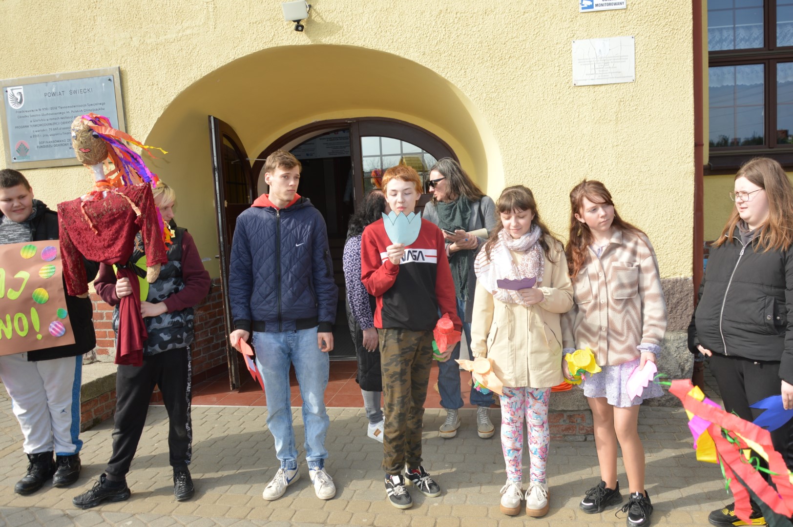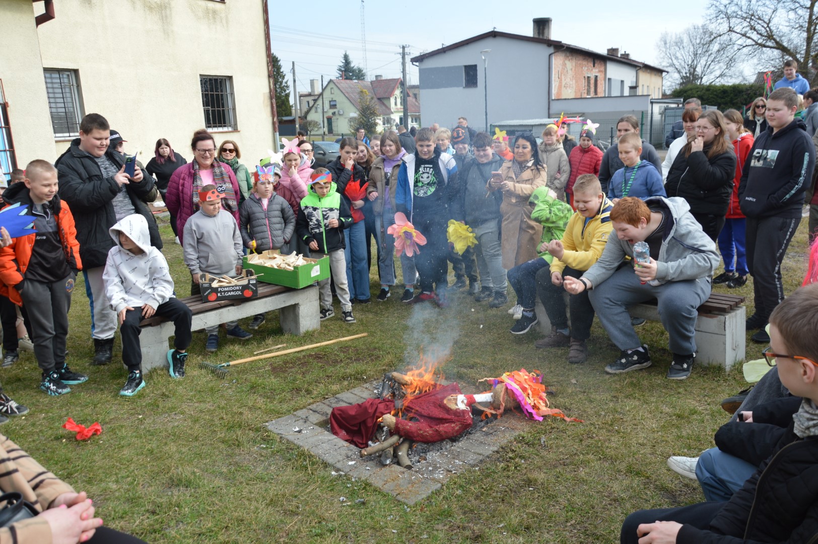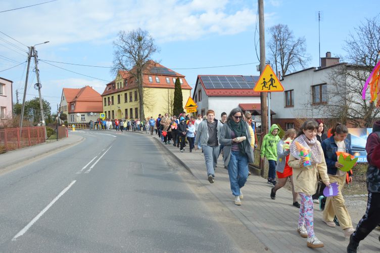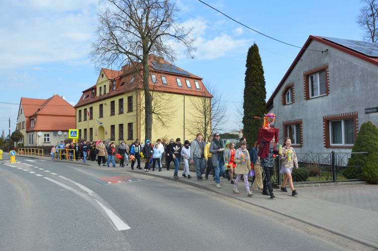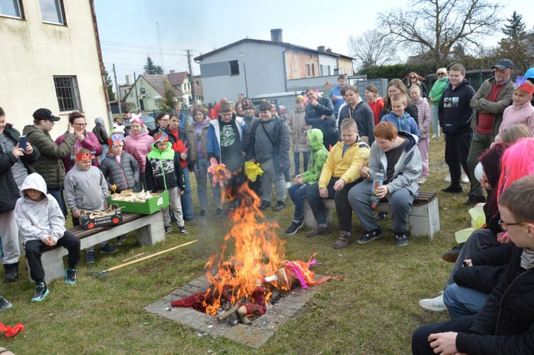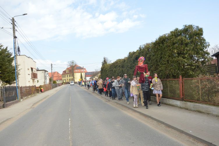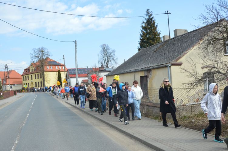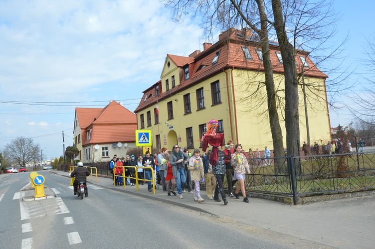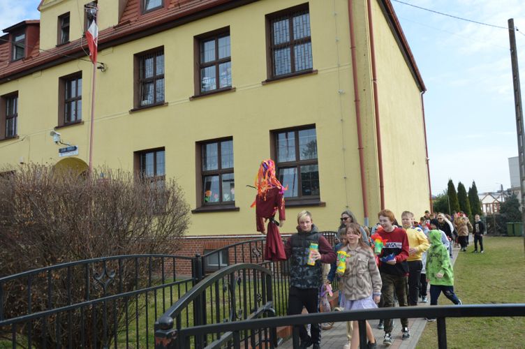 Obchody rozpoczęliśmy kolorowym przemarszem ulicami naszej miejscowości. Uczniowie z zaangażowaniem nieśli przygotowaną wcześniej Marzannę - symbol odchodzącej zimy. Tradycyjnie, zgodnie z obyczajem, pożegnaliśmy zimę poprzez symboliczne spalenie Marzanny, witając tym samym nadchodzącą wiosnę.