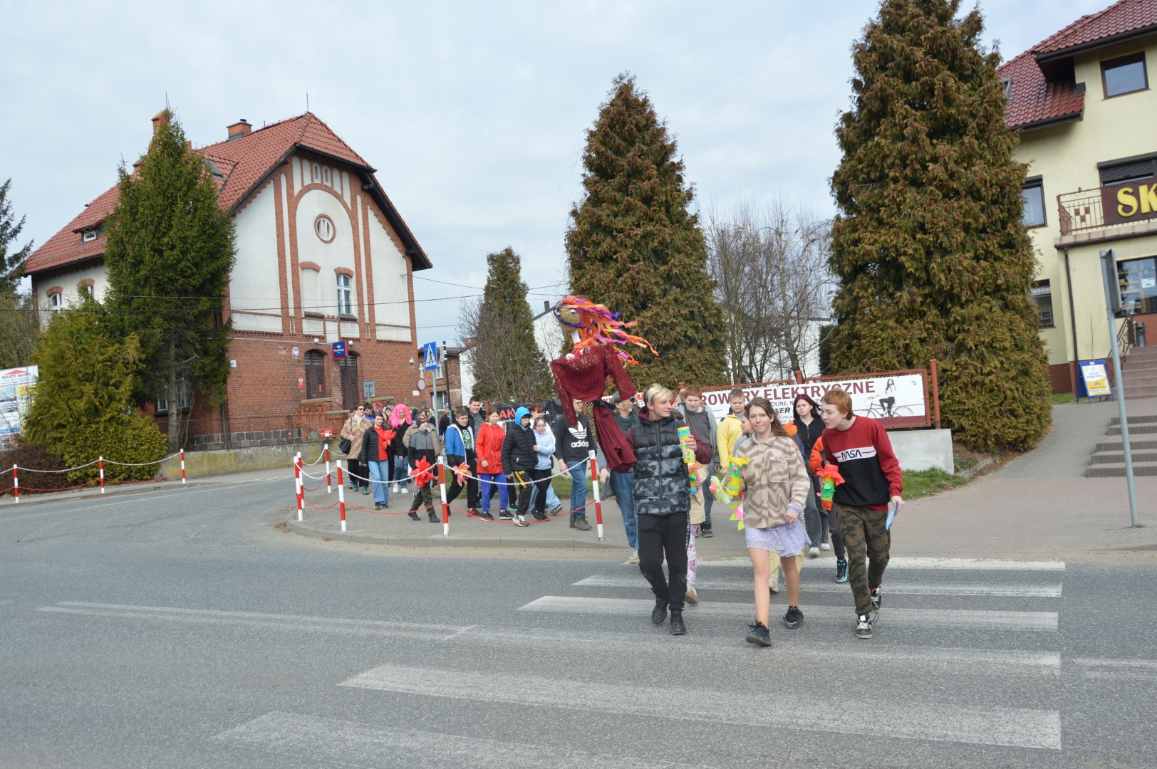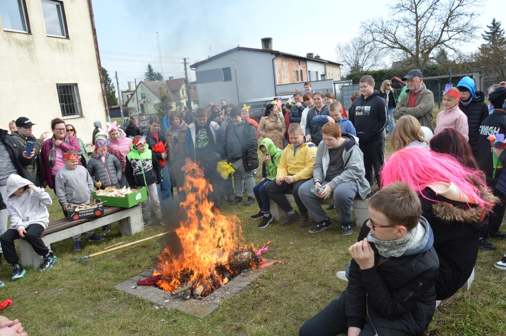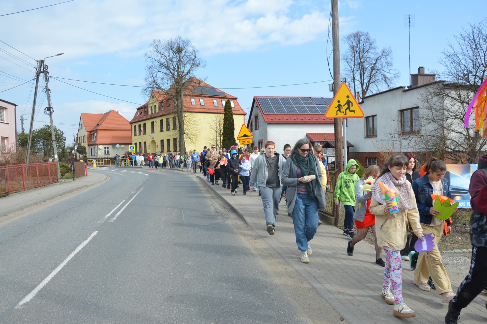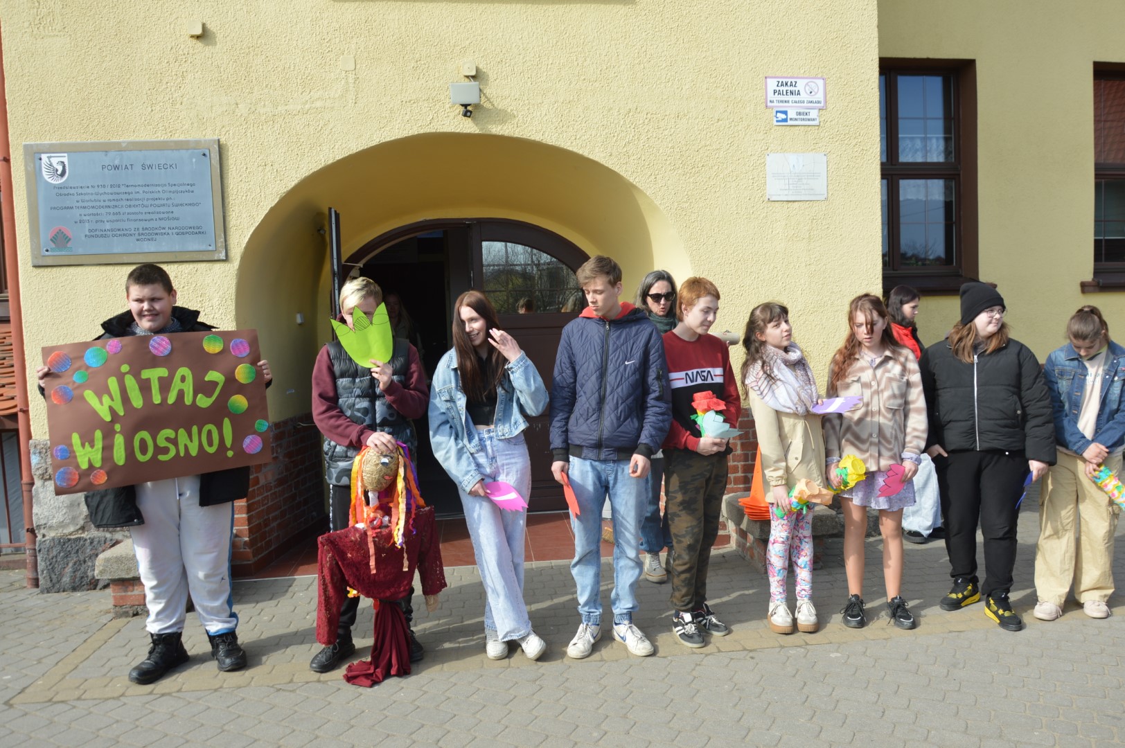 Obchody rozpoczęliśmy kolorowym przemarszem ulicami naszej miejscowości. Uczniowie z zaangażowaniem nieśli przygotowaną wcześniej Marzannę - symbol odchodzącej zimy. Tradycyjnie, zgodnie z obyczajem, pożegnaliśmy zimę poprzez symboliczne spalenie Marzanny, witając tym samym nadchodzącą wiosnę.