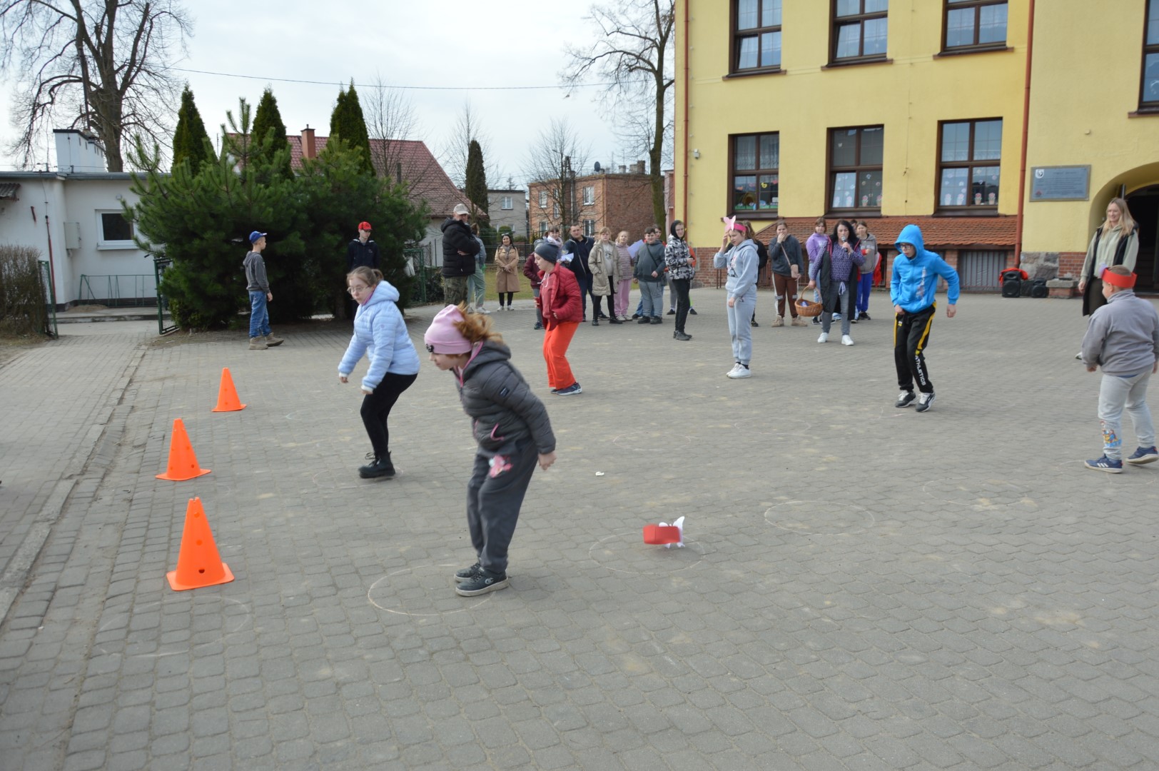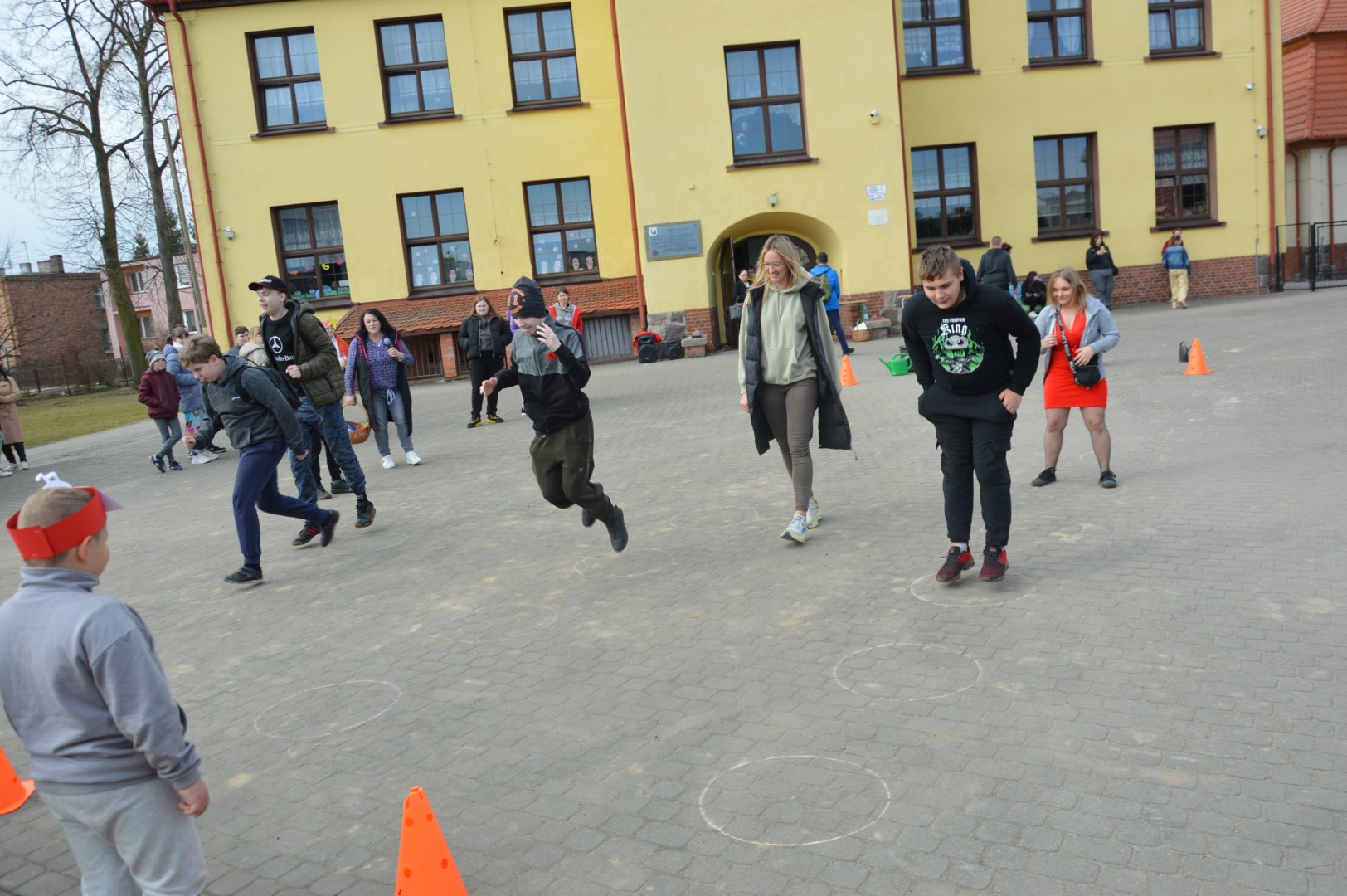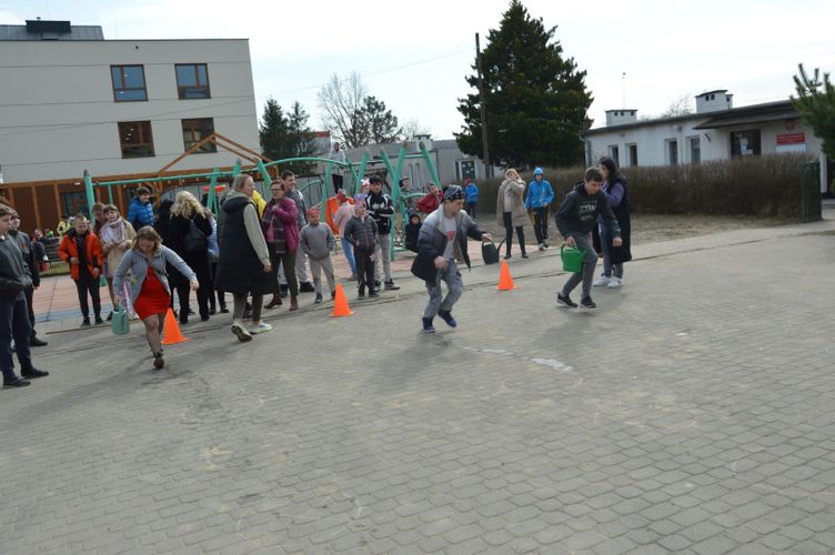 Po części oficjalnej przyszedł czas na aktywność fizyczną i zdrową rywalizację. Na uczniów czekały liczne konkurencje sportowe inspirowane wiosną, które dostarczyły wielu emocji i radości. Była to doskonała okazja do wspólnej zabawy, rozwijania sprawności ruchowej oraz budowania ducha zespołowego.