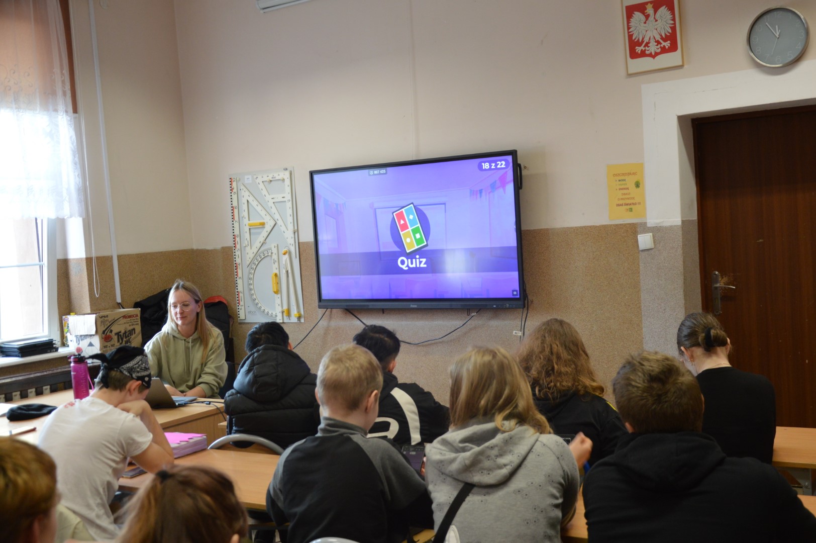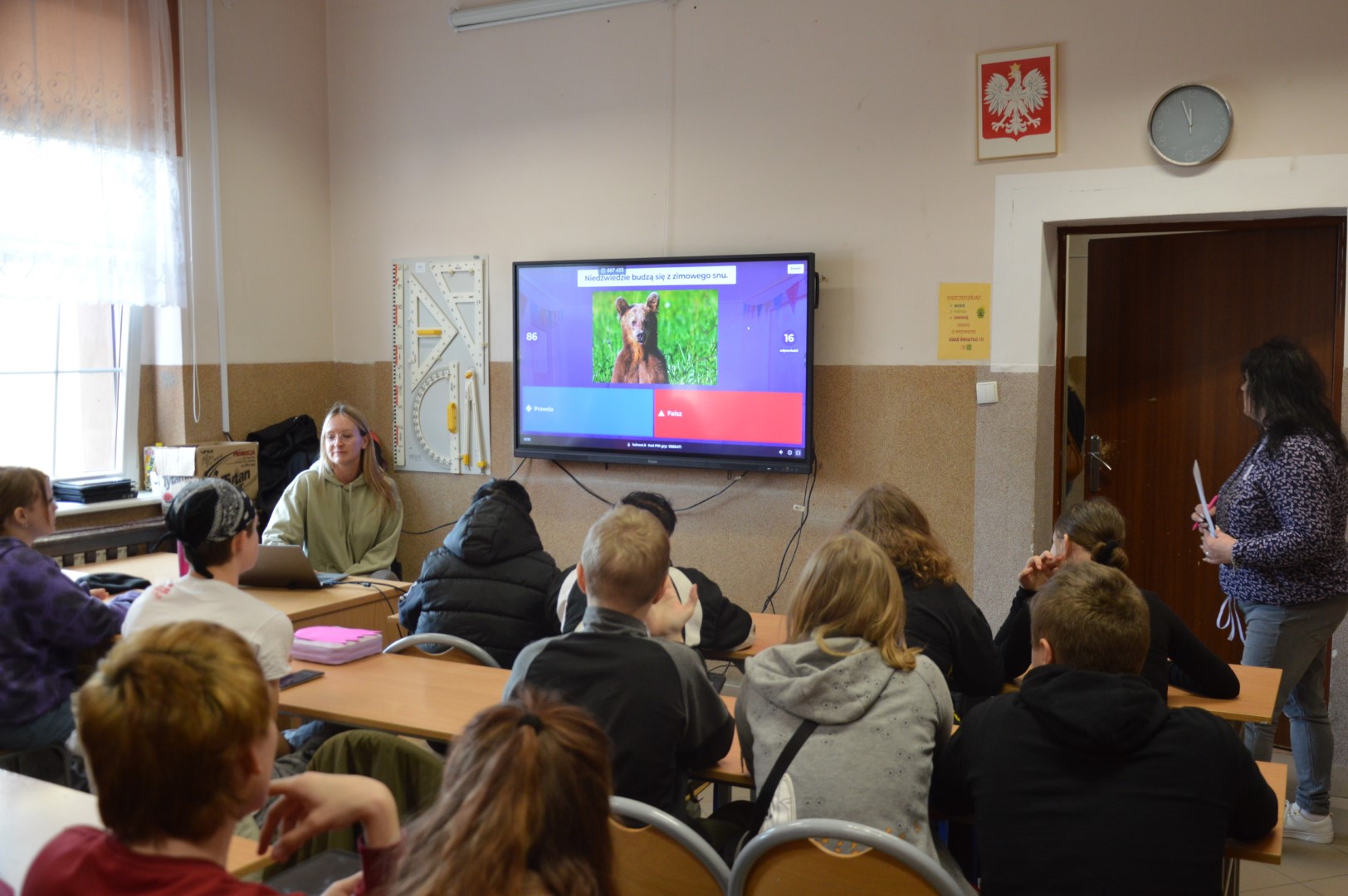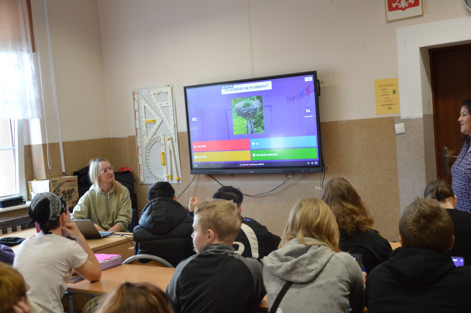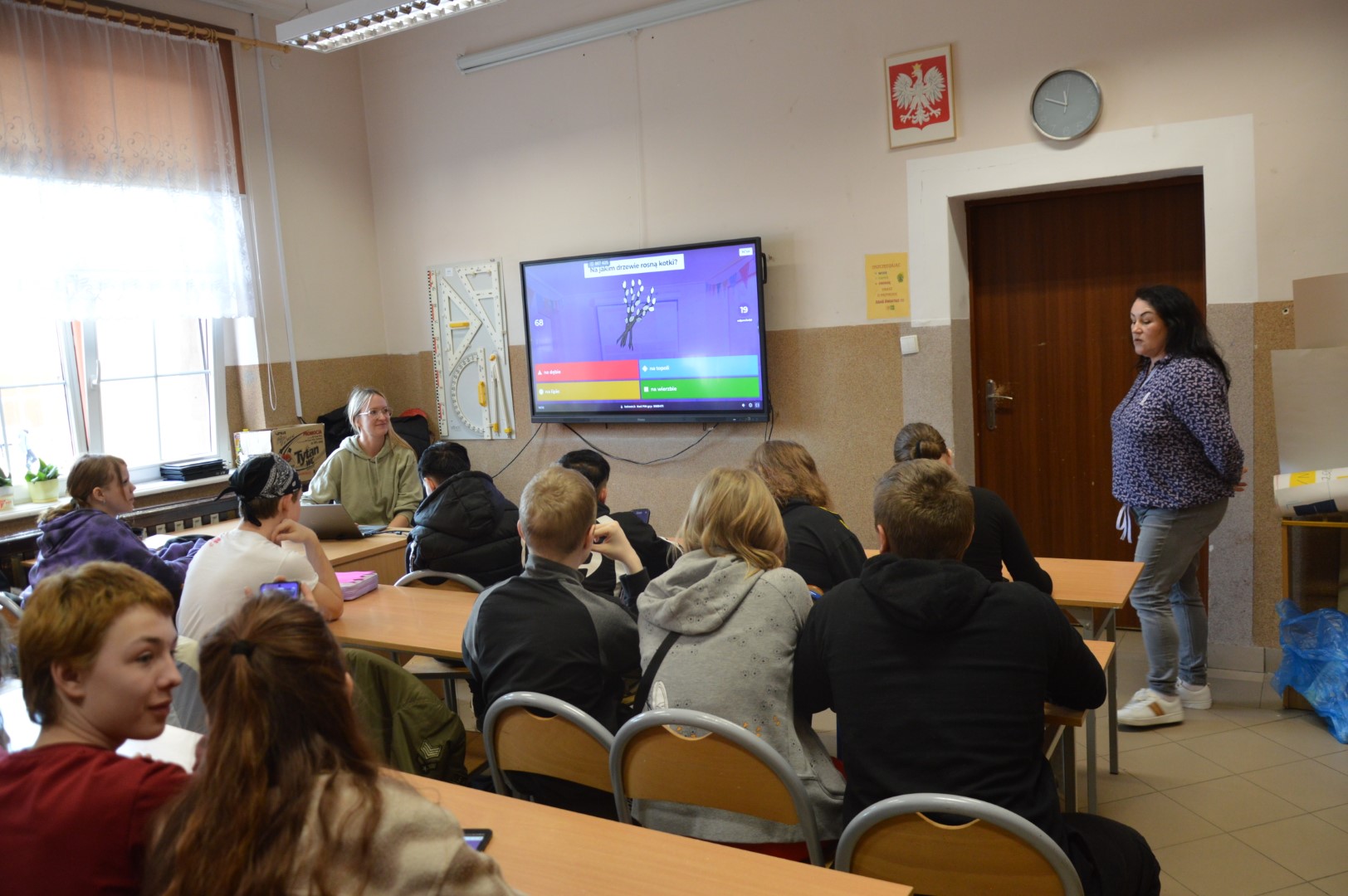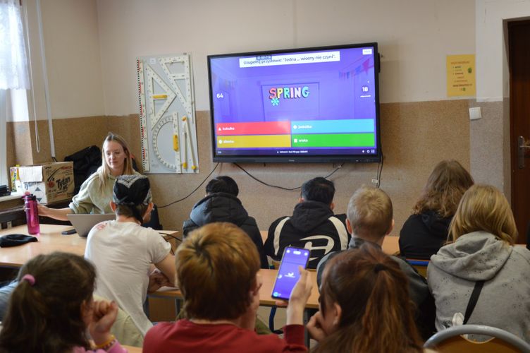 Nie zabrakło również elementów edukacyjnych. Uczniowie wzięli udział w interaktywnym konkursie wiedzy w formie Kahoot, gdzie mogli sprawdzić swoją wiedzę o wiośnie, przyrodzie oraz tradycjach związanych z tym okresem roku. Rywalizacja była zacięta, a zabawa - świetna!